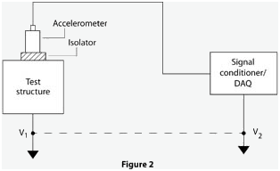 大多数信号调理器,是通过自己的电源接地。那么,技巧是确保该系统的其余部分不接地。加速度计必须检查。特别是传感器外壳是隔离的还是外壳接地的?